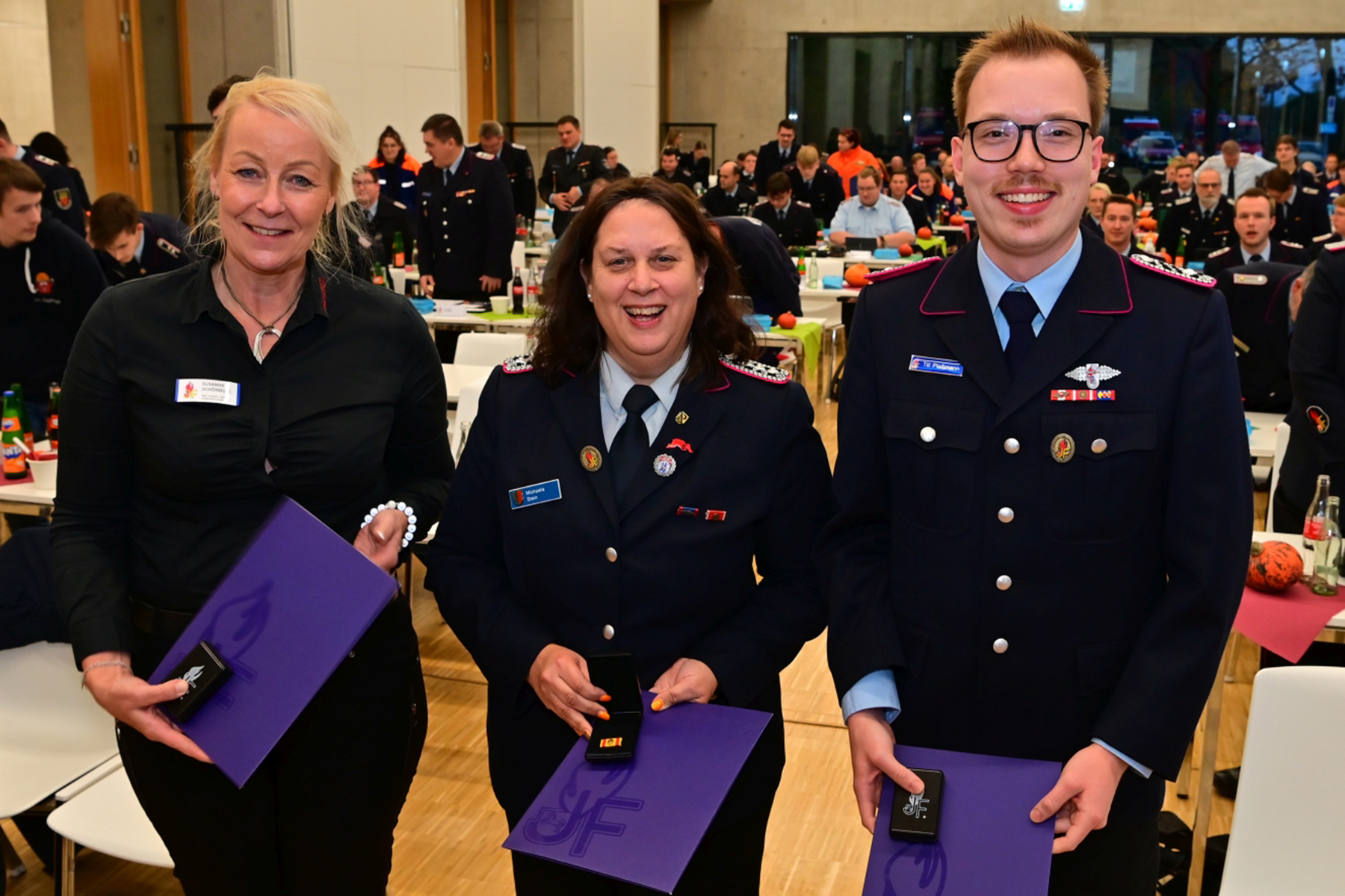 Das Ehrenzeichen der Niedersächsischen Kinder- und Jugendfeuerwehr erhielten: Till Pleßmann (ehem. Landesjugendsprecher, Bezirksjugendsprecher und aktuell stellv. Bezirks- Kinder- und Jugendfeuerwehrwart Hannover), Susanne Schöndube (Langjährige Mitarbeiterin Geschäftsstelle) und Michaela Stein (langjähriges sehr engagiertes Wirken im Bereich der Kinderfeuerwehren).