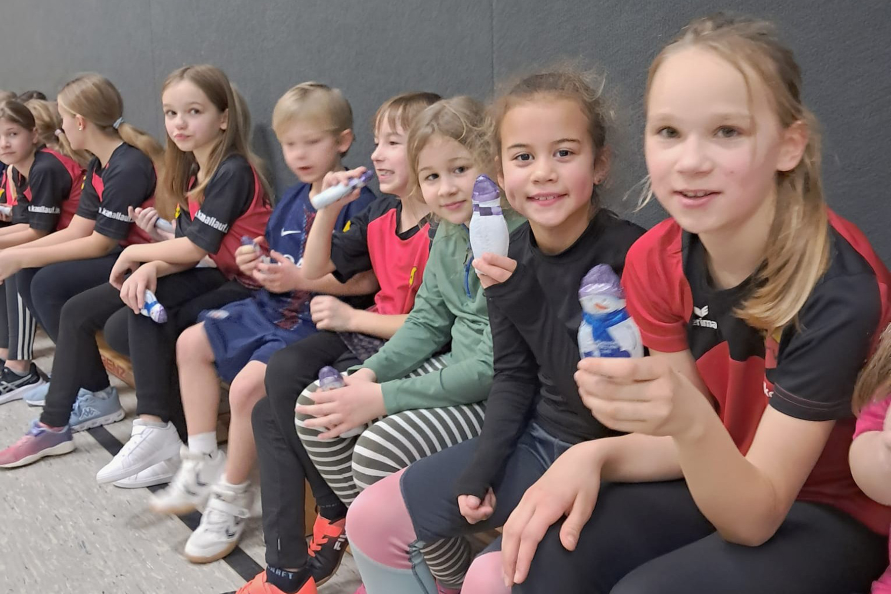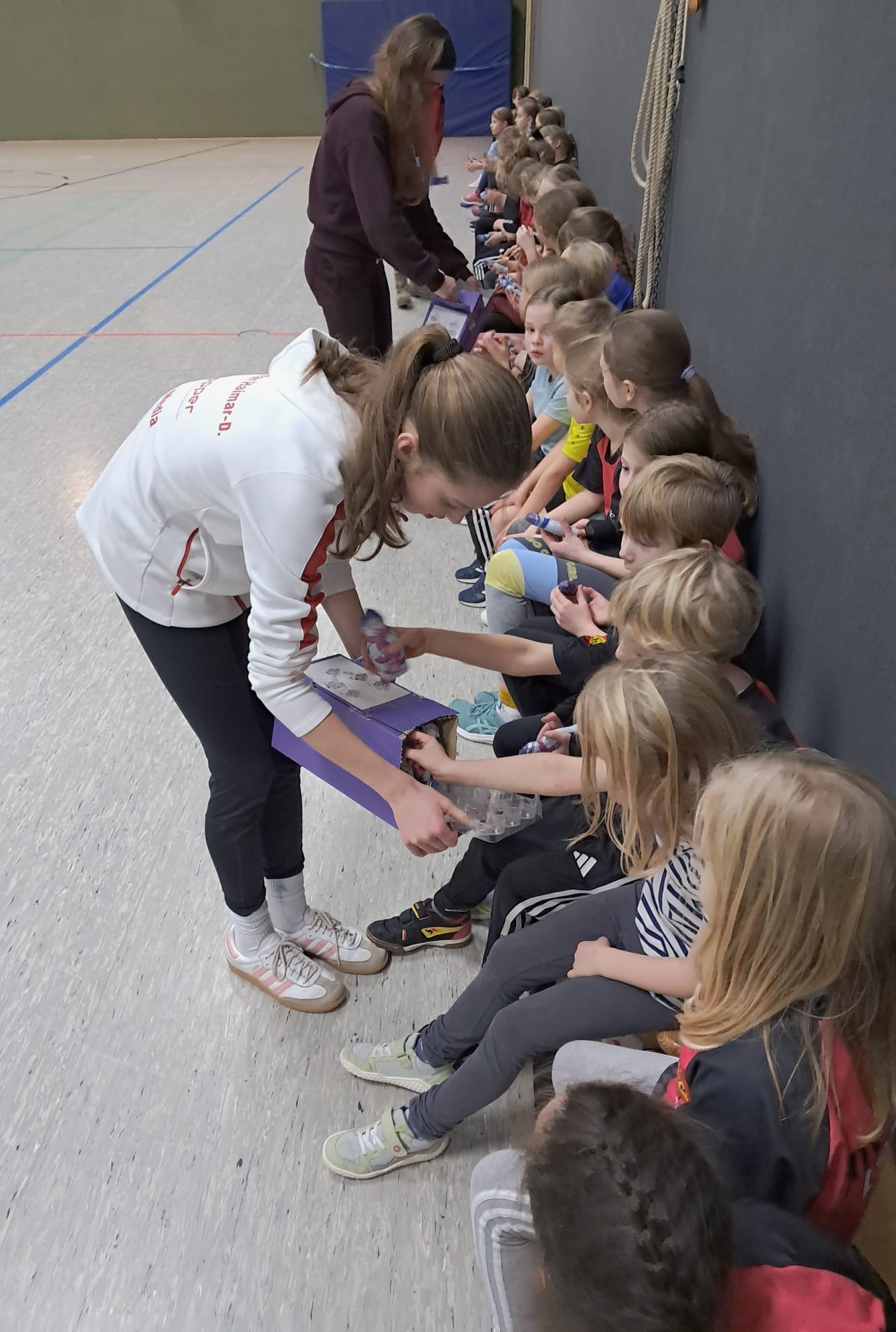 Nach dem sportlichen Teil gab es zwei kleine Überraschungen: Zunächst verteilten die Sportassistentinnen an jedes Kind und jeden Jugendlichen einen Schoko-Schneemann. Der Höhepunkt des Abends war jedoch die traditionelle Auszeichnung der trainingsfleißigsten Teilnehmerinnen und Teilnehmer. In diesem Jahr haben sich zehn Mädchen und neun Jungen durch besonders regelmäßige Trainingsteilnahme eine Ehrung verdient.