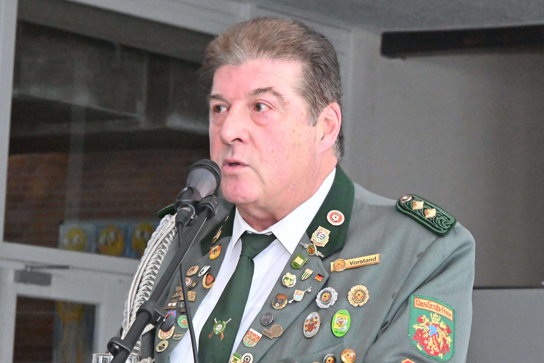 Schriftwart Carsten Elges erklärte den Anwesenden die Idee hinter dem neuen Format. „Warum nicht auch mal etwas Neues machen“, fragte er und erläuterte, dass der Neujahrsempfang bewusst nicht im Sommer und ohne Marschieren stattfinden solle. Man wolle neue Wege gehen und versuchen, Moderne und alte Tradition miteinander zu verbinden.