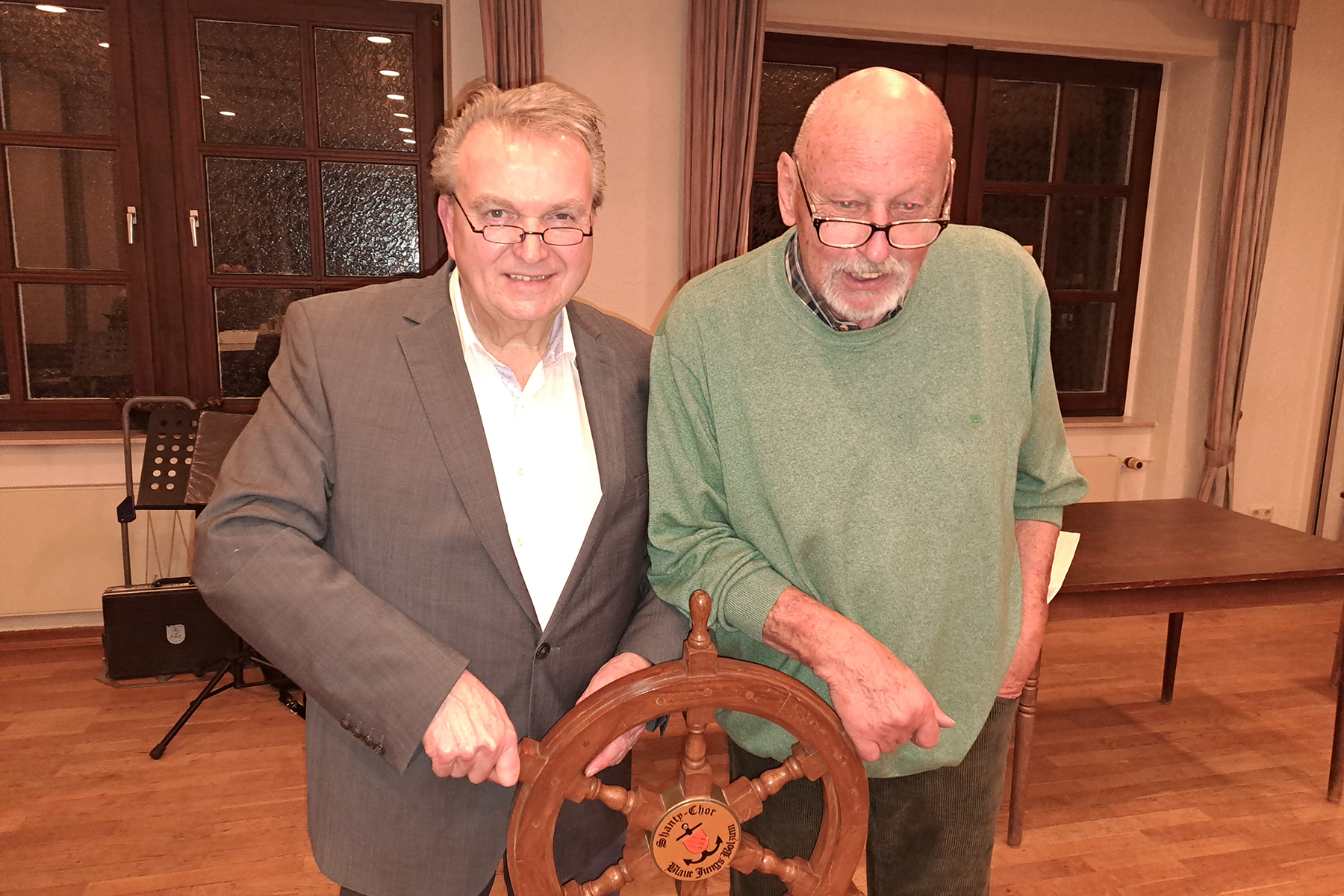 Bei den weiteren Vorstandswahlen gab es Wiederwahlen: 2. Vorsitzender Jürgen Wille (Rautenberg), Kassenwart Jürgen Koch (Bolzum) und Schriftführer Manfred Ebensen (Lehrte). Meyer übergab dem neuen Vorsitzenden symbolisch das Steuerrad und wünschte ihm viel Erfolg. Wobbe dankte für das Vertrauen und versprach, sich für den Fortbestand des Chores einzusetzen.