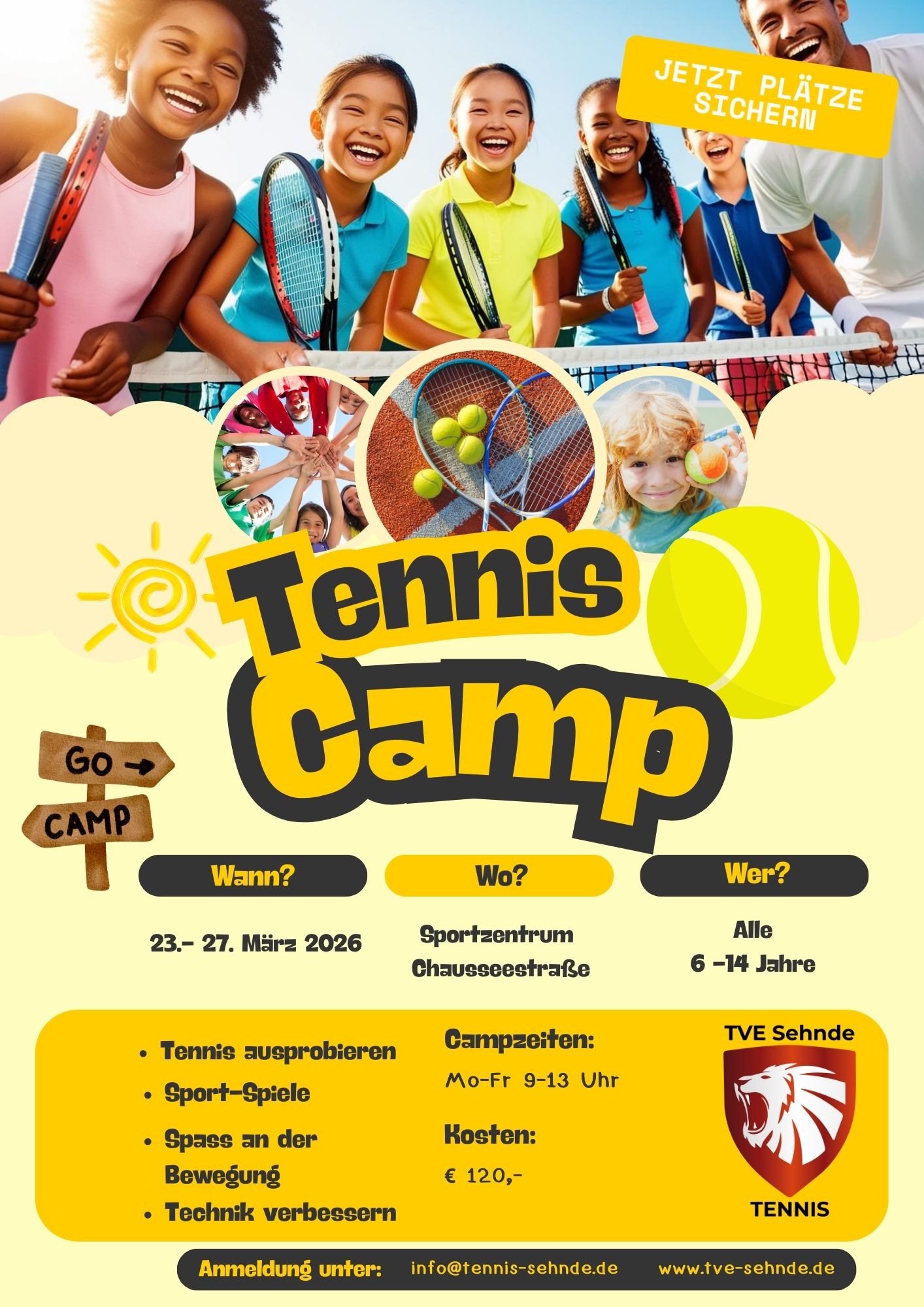 Der TVE Sehnde bietet vom 23. bis 27. März 2026 ein Tennis-Camp für Kinder und Jugendliche im Alter von 6 bis 14 Jahren an. Veranstaltungsort ist das Sportzentrum an der Chausseestraße.