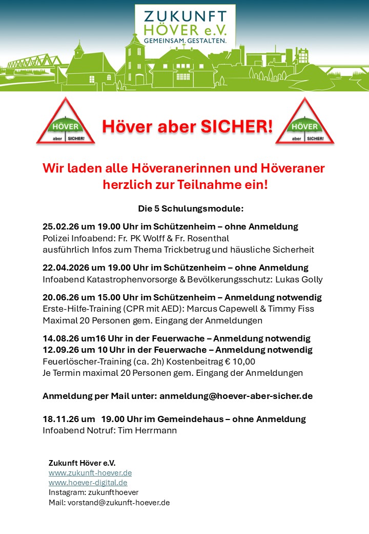 Mit „Höver, aber SICHER!“ setzt der Verein ein Zeichen für Eigenverantwortung und Zusammenhalt im Ort. Sicherheit entsteht durch Information, Engagement und gemeinsames Handeln.