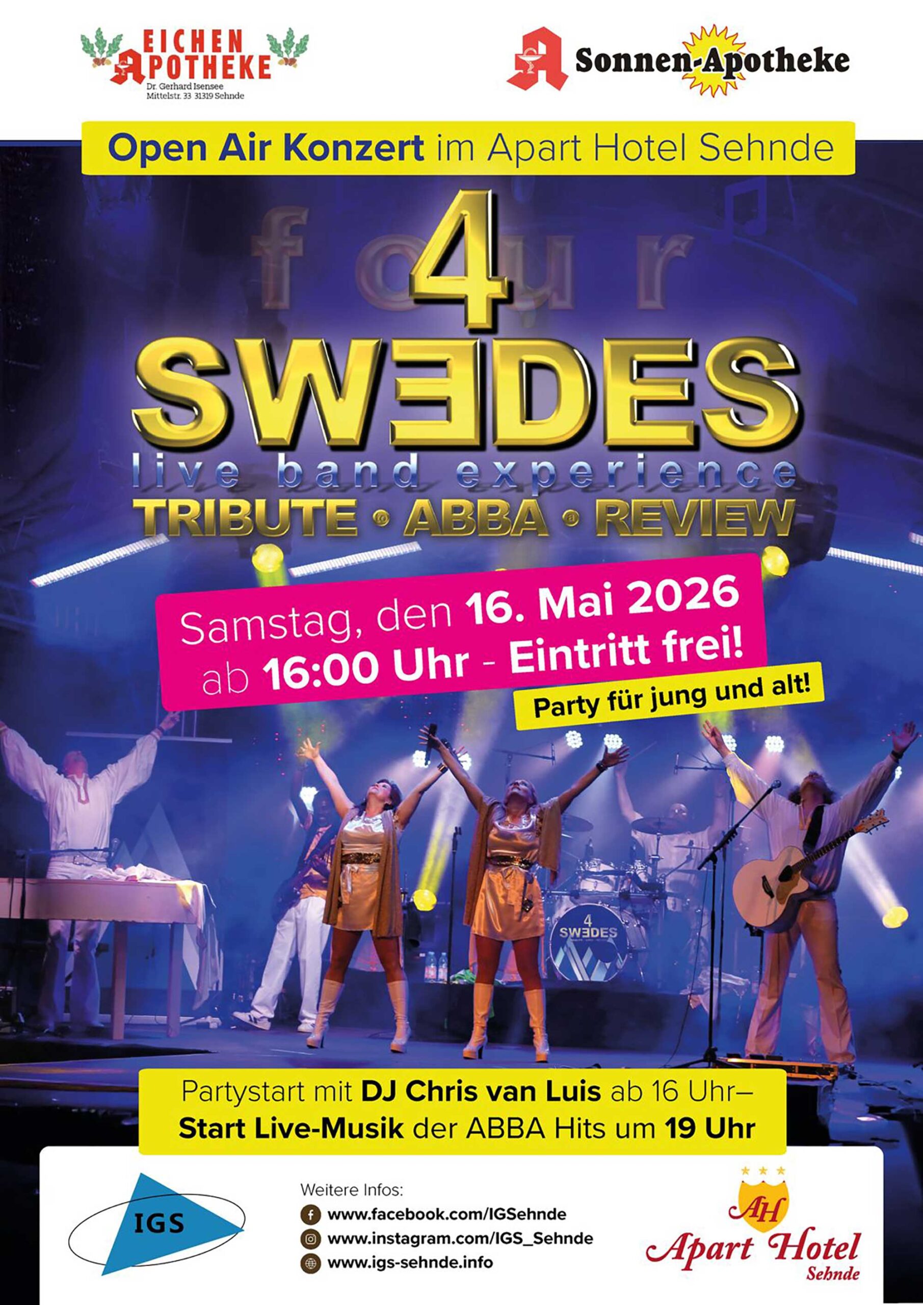 Eröffnet wird die Veranstaltung von DJ Chris van Luis, der ab 16 Uhr für Partystimmung sorgen soll. Der Start der Live-Musik mit den Abba-Hits ist für 19 Uhr angekündigt. Auf der Bühne steht die Band 4 Swedes, die in diesem Jahr ihr 17-jähriges Bestehen feiert.