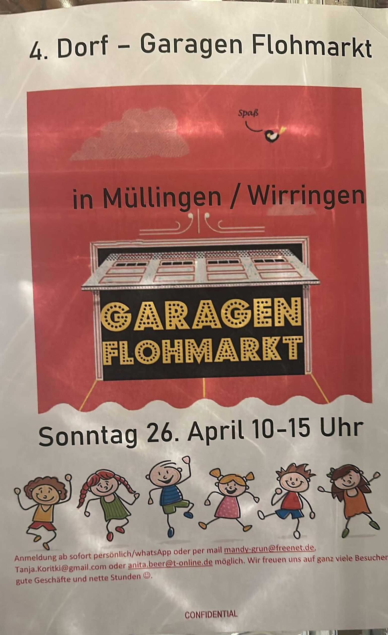 In Müllingen und Wirringen findet am kommenden Sonntag, 26. April 2026, ein Dorfflohmarkt statt. Von 10 bis 15 Uhr öffnen zahlreiche Anwohner ihre Höfe und Gärten und bieten gebrauchte Schätze, Kleidung, Spielzeug und vieles mehr an.