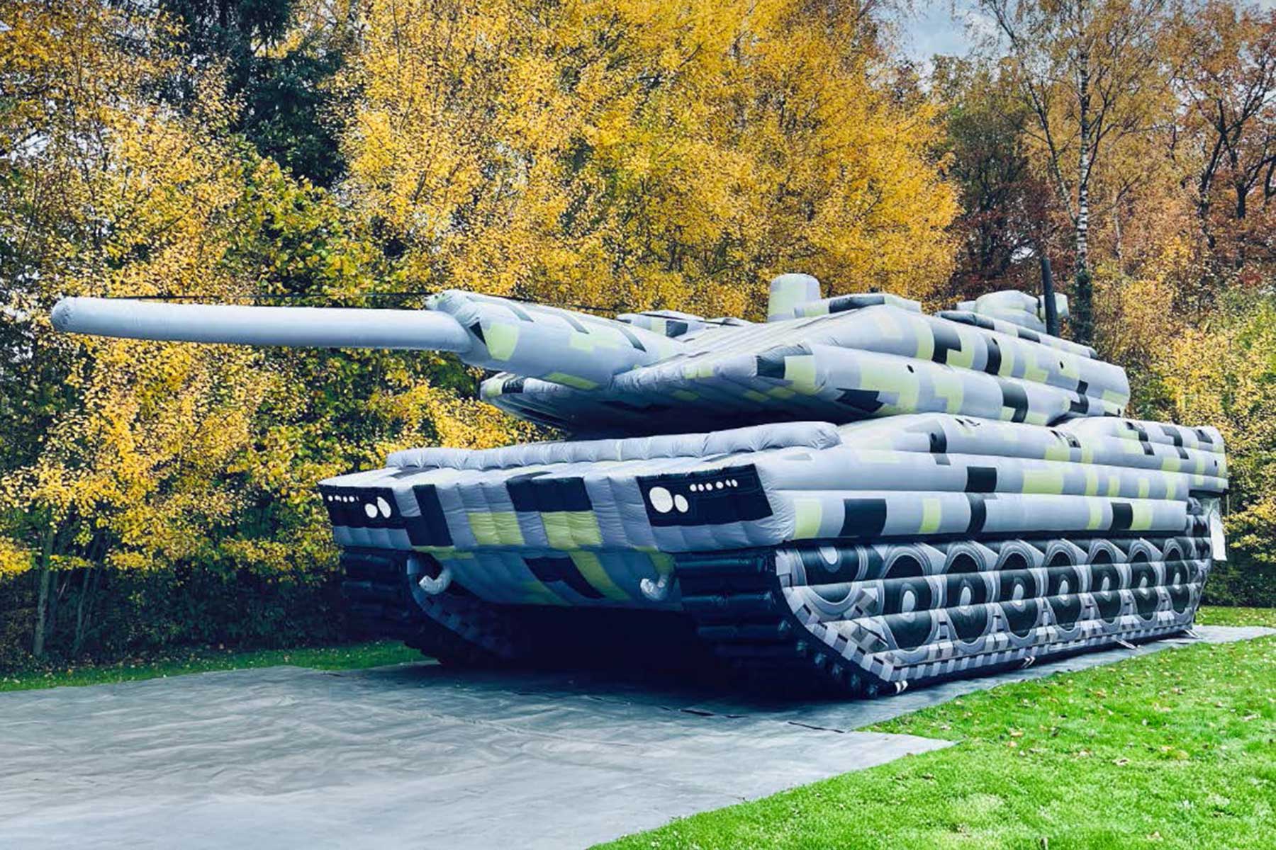 Nach monatelanger Entwicklungsarbeit präsentiert das Team von KinderEvents Sehnde jetzt eine europaweit einzigartige Hüpfburg im Panzerdesign. „Das aufblasbare Spielgerät ist
